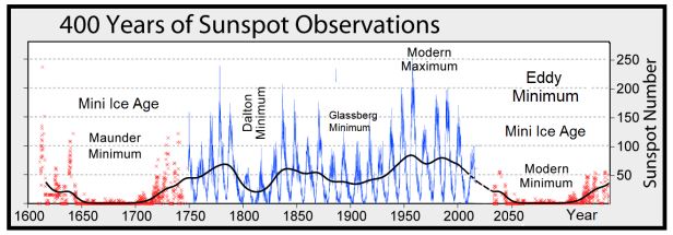 - für 2030 kleine Eiszeit vorrausgesagt - letzter Höhepunkt der Sonnenaktivität gab es 2013 ->Link